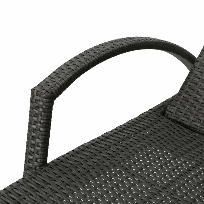 Add some stylish comfort to your patio decor with these wicker lounges now with arm rests. They are weather resistant and with an adjustable back and folding legs for easy stacking.