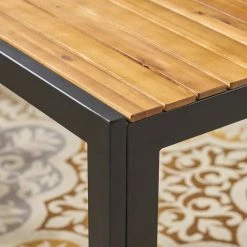 In a daring combination of acacia wood and iron, this modern outdoor dining table will be sure to please all those invited to enjoy a meal together over it. Upscale elegance comes together harmoniously with clean, unadulterated design; this piece’s contemporary, slatted top is sealed to protect its surface against spills and stains, which means clean-up after dinner will be an absolute breeze.