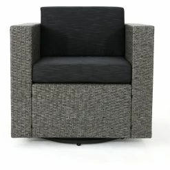 This outdoor swivel club chair will change everything you know about club chairs. Not only will you be able to turn to the tune of the conversation, but you can sit back comfortable knowing that no matter what direction the sun is shining, you don’t have to get up just to turn away from it. Made with top quality wicker over an iron frame, this chair is sure to please.