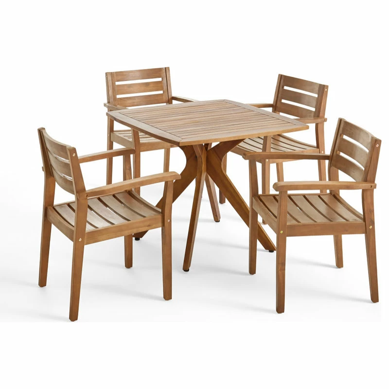 Eat in the great outdoors of your backyard with this dining set. With enough seating for a family of 4, this dining set is perfect for the hot summer nights when the last thing you want to do is be stuffed inside your home. Made with acacia wood, this dining set is sure to last and will have you enjoying the time with your family and friends in comfort. Through some steaks on the BBQ and eat outdoors with stars.