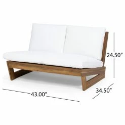 Our loveseat will be the pinnacle of your backyard or patio decor with its stunning design and outstanding comfort. This piece uses both dazzling modern design and incredibly solid structures to create the perfect addition to any outdoor space. Featuring cozy water-resistant cushions and durable acacia wood frames, our loveseat is made to give your home an eye-catching upgrade in decor. Whether you need a space to entertain your guests or a sleek masterpiece for your patio, our loveseat does it all.