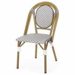 Lend a splash of texture and color to your patio space with a set of chairs that will have you reminiscing about French inspiration. Built with bamboo finished aluminum frames, this chair set not only offers a natural touch with its charming design but it also showcases outstanding durability. The seat and backrests are finished with stunning wicker which brings refreshing breathability and style to your summer lounging. Perfect to pair with a side table or your favorite bistro table, these accent chairs are sure to bring your outdoor space to the next level.