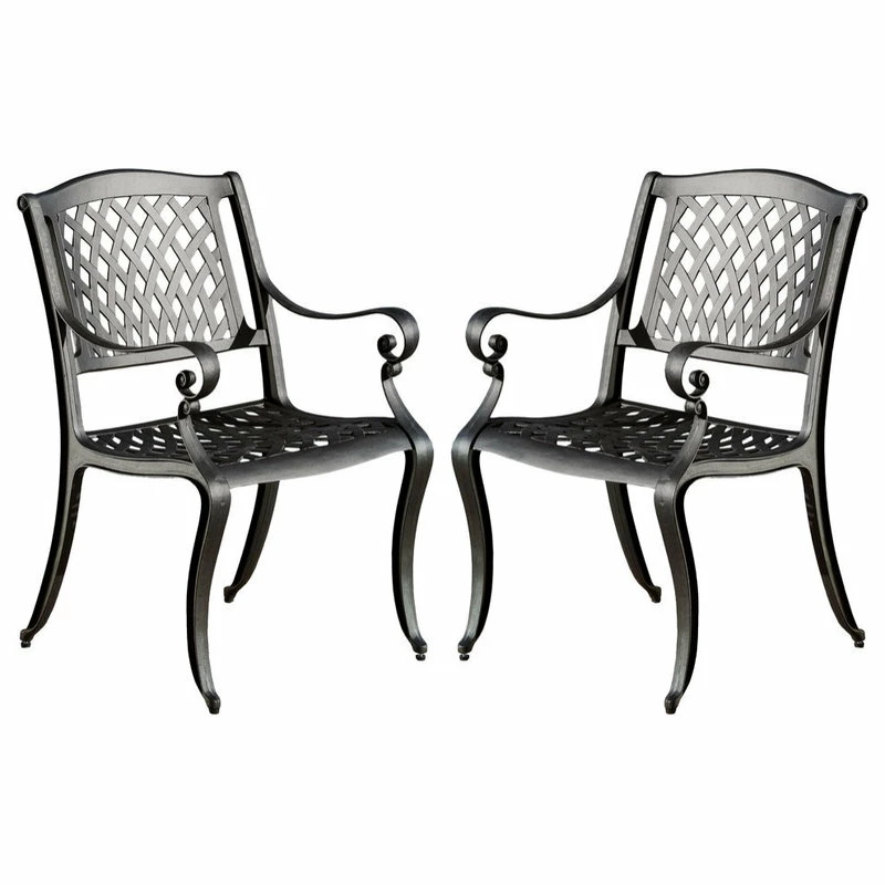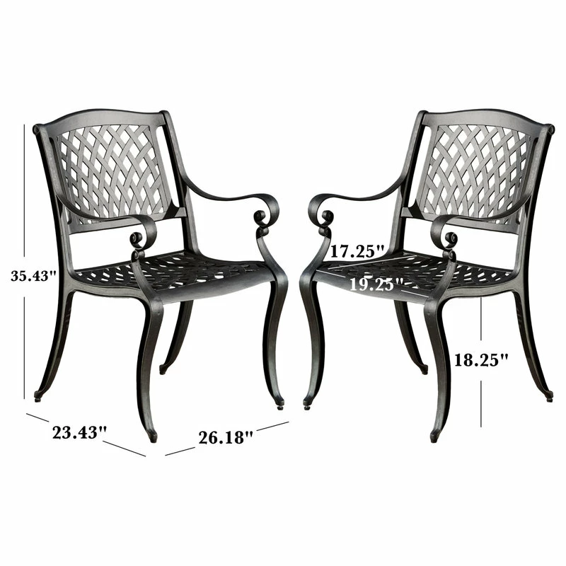 Dining in elegance has never been easier with the help of our delightful chair set. These dining chairs will bring luxury and convenience to your outdoor space. Made from cast aluminum, these durable, high-quality chairs feature a mesh-style backrest and seat rest. With a gorgeous neutral finish, this set will match any outdoor furniture that also provides sturdy, weather-resistant frames. Whether you are using these in your backyard, patio, or deck space, you’ll enjoy these chairs for years to come.