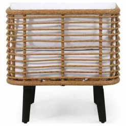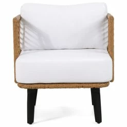 Revamp your outdoor space with seating that gives off a feeling of refreshing comfort and refined charm. Rounded cube seating, a rattan weave finish, and sturdy splayed legs come together to create an incredible masterpiece for your outdoor space. Our club chair set brings a sophisticated yet minimalistic structure that has incredible stability and exquisite design. Finished with cozy water-resistant cushions, this set brings a cozy and timeless look to your outdoor space, giving an undeniably stylish flair to your home.MODERN DESIGN: With clean lines contrasted perfectly by its rounded cube structure, our wicker chair set is the ideal modern accessory for your outdoor space. Finished with sturdy tapered legs, these chairs not only offer a sleek, minimalistic look but also provide a stable structure.POLYETHYLENE RATTAN: Featuring a long-lasting woven finish, this style is not only incredibly durable but also provides a versatile appearance. The handcrafted details of this material allow this piece to blend seamlessly with your decor.ACACIA WOOD LEGS: Made with acacia wood that brings a sleek and exotic look to your space, this durable hardwood naturally withstands outdoor elements and will not darken over time. Acacia wood is perfect as a solid, heavy frame that resists wear and tear.WATER-RESISTANT CUSHIONS: Our cushions are covered with a non-porous material that makes cleaning any spill a breeze. Please note that these cushions are water-resistant and not waterproof. Please do not submerge in water.DIMENSIONS: Choose an accessory that is the perfect size for you and your furniture. Each chair is 26.00″W x 28.00″D x 26.50″H. You will love how much your space can transform with the simple addition of this charming chair set.