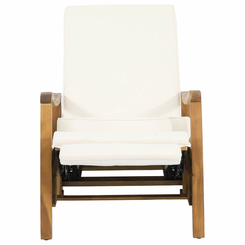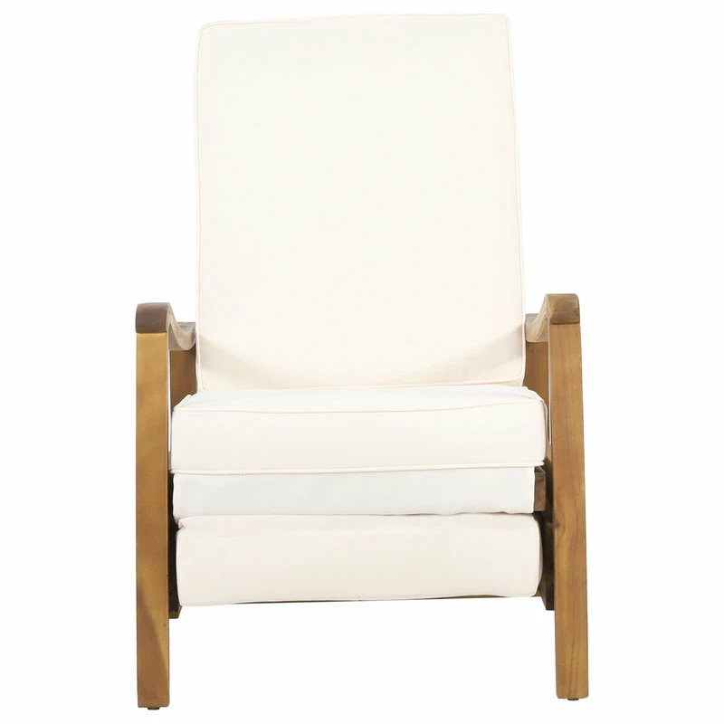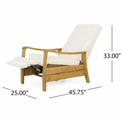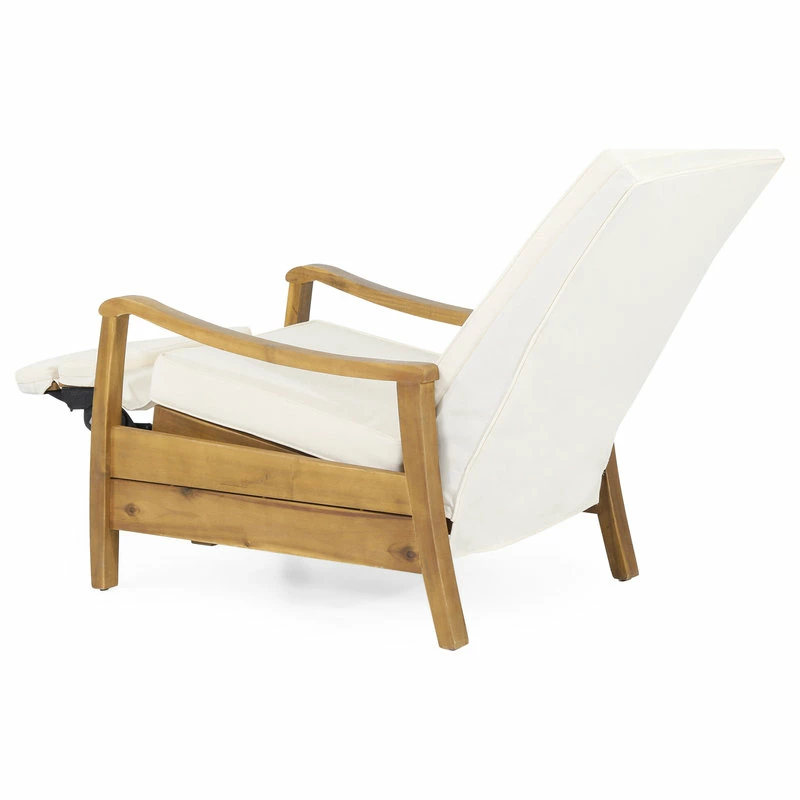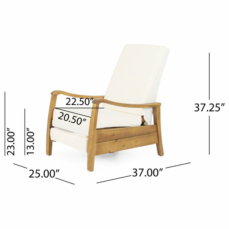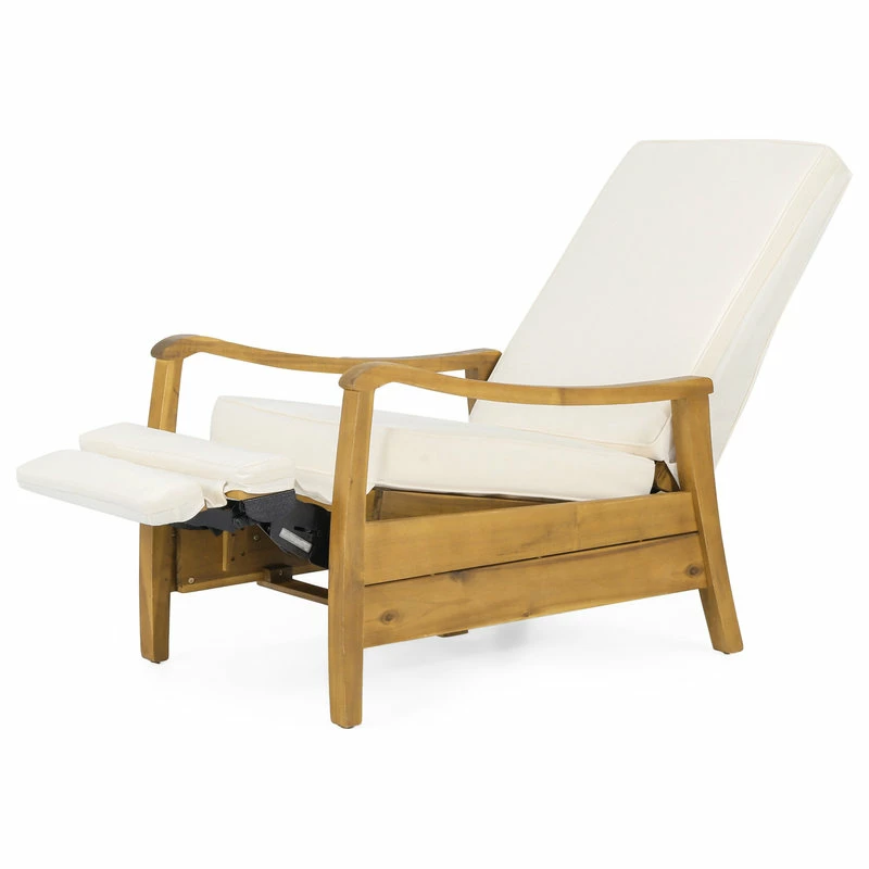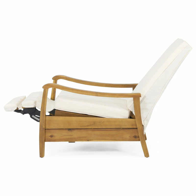 Lean back in your own backyard or patio space and enjoy the warm sunshine with seating that is sure to bring you comfort. Featuring a rich acacia wood frame and a plush water-resistant cushion, this recliner set offers excellent support and durability, topped with cushy comfort for hours of leisure under the sun. This impressive set takes a traditional rustic style and gives it a modern twist so that you can enjoy an upgraded look for your backyard or patio space along with its convenient functionality.