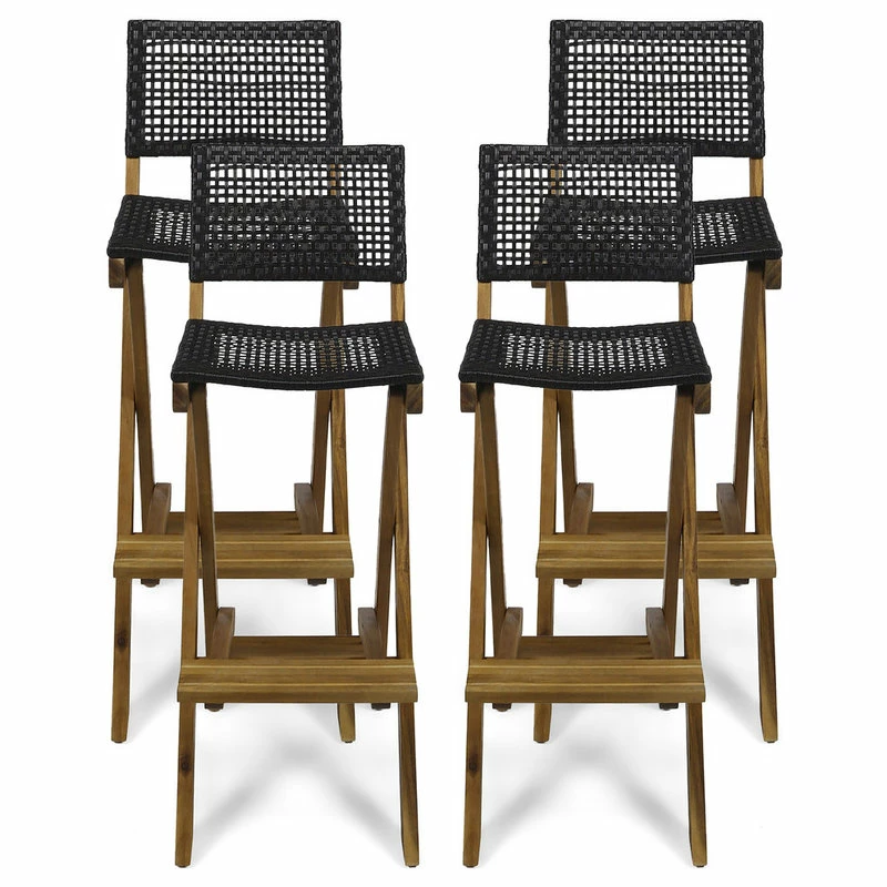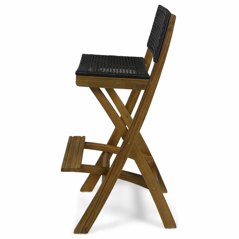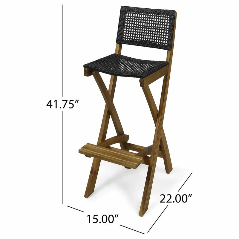 Uplift your outdoor space with a set of barstools that will blend in perfectly with the great outdoors. Providing compact functionality with its foldable option, these barstools offers convenient mobility, allowing you to use these in a multitude of ways. Constructed with acacia wood frames and woven seating, this set offers reliable durability that naturally withstands most weather conditions. It is finished with traditional hole-to-hole wicker caning that provides our set with impeccable comfort and style that will last you for many years to come.
