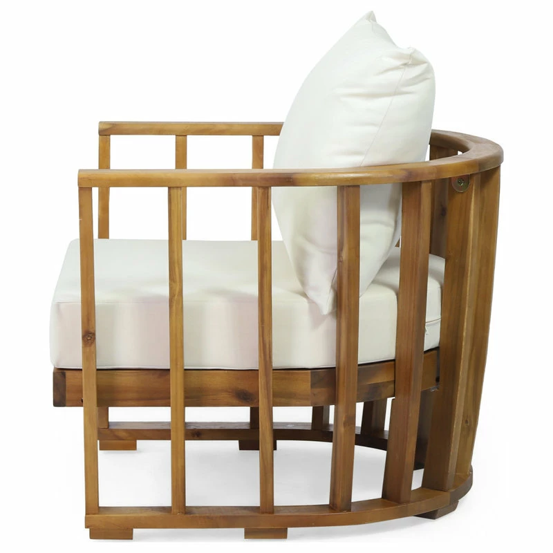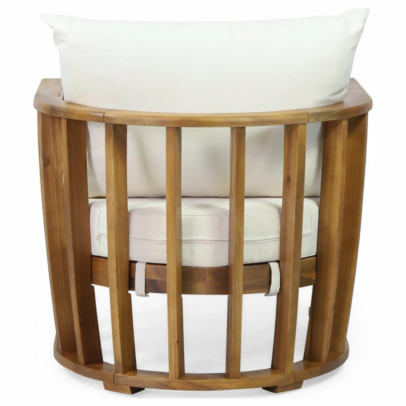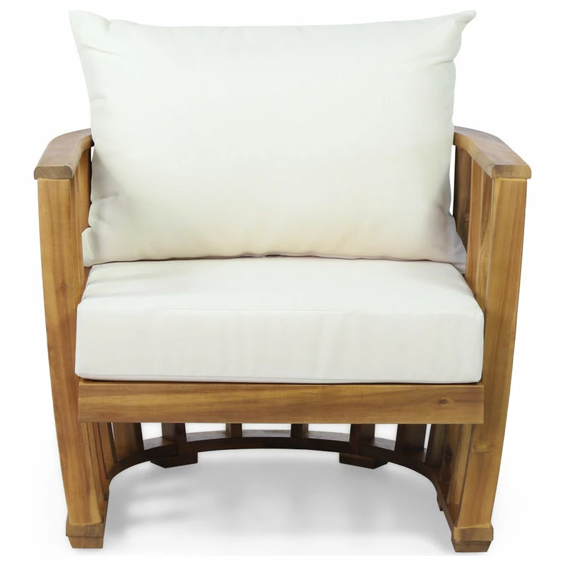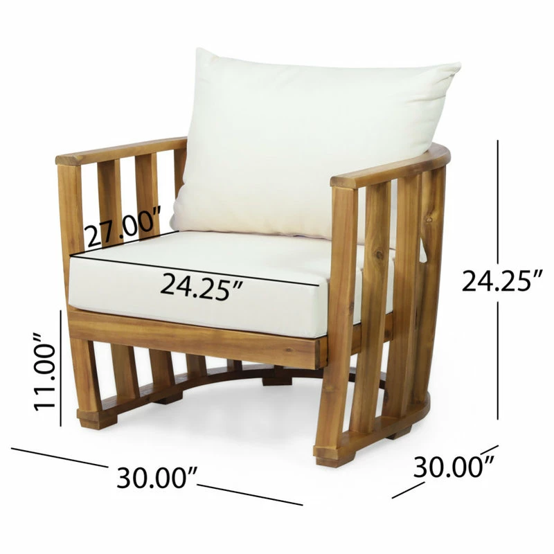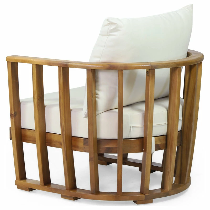 Welcome style and comfort into your outdoor space with seating of splendid elegance. Combining a stunning open slat design with a curvaceous structure, our club chair set will be a flawless addition to any outdoor lounge area. This can be used as a standalone or can be used to accent your existing furniture, making this a dream for those who love to personalize their space. With solid acacia wood frames and plush outdoor cushions, these chairs offer hours of conversation for you and your guests.