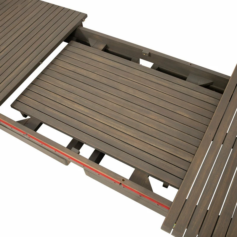 Spice up your outdoor get-togethers with a dining table offers the best of the best in both function and style. This table is extremely convenient with its expandable feature, allowing you to accommodate unexpected company. With ample space for all of your guests, this table is the perfect addition to any outdoor space. Made with smooth acacia wood, this outstanding piece features a classic slatted tabletop that is supported by sturdy U-shaped legs, making this table the perfect addition to any outdoor decor.