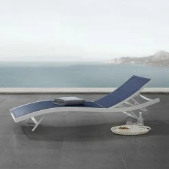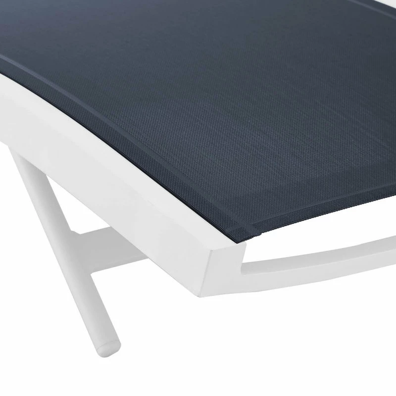 Enjoy warm sunshine and serene relaxation with the Glimpse Outdoor Patio Chaise Lounge Chair. A contemporary update to your outdoor living space, Glimpse comes with a breathable Textilene mesh seat for ergonomic comfort and support, a long-lasting, powder-coated aluminum frame, and non-marking foot caps. Sit back and relax as you choose from four height adjustable recline positions. Perfect for the backyard, patio, or poolside, this outdoor lounger features sweeping lines, splayed legs, and a fresh, modern aesthetic. Chaise Lounge Weight Capacity: 331 lbs.