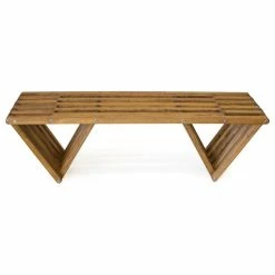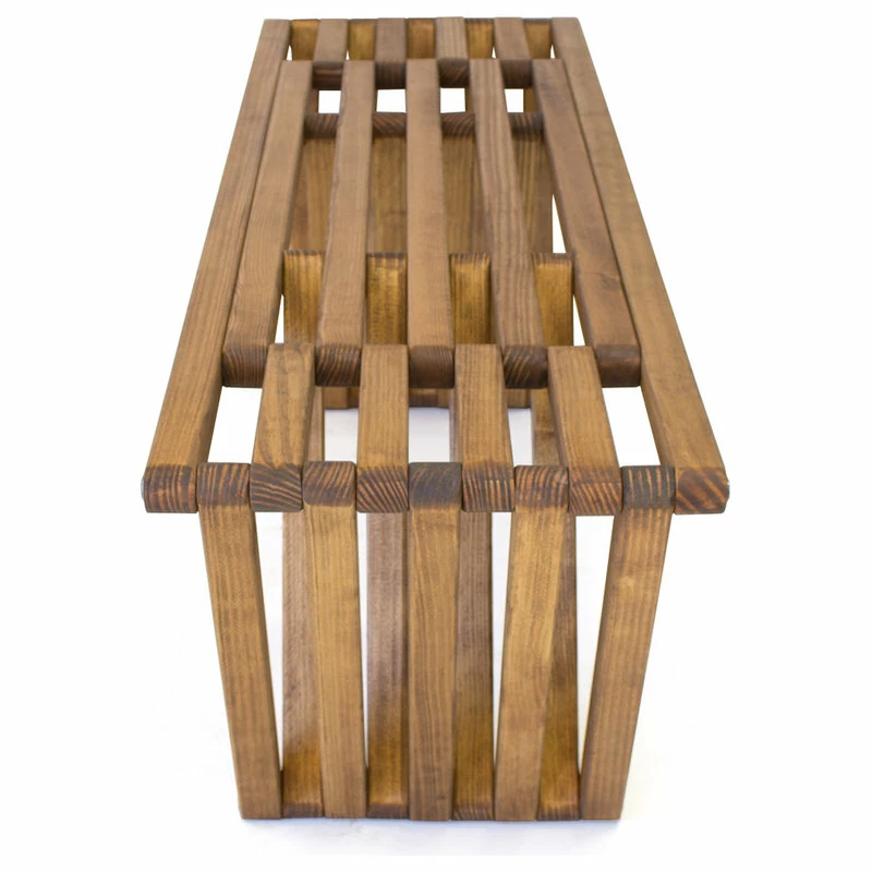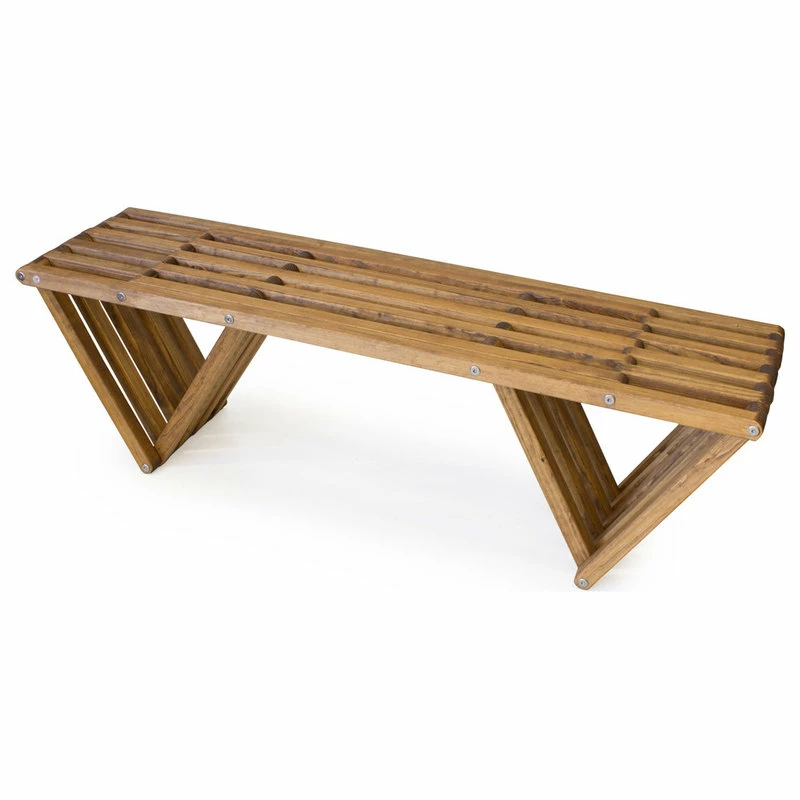 This Modern design solid wood Bench 60 is made in America. The backless design highlights an inventive look plus the added strength of the triangular legs. It is durable enough to withstand the elements inside or outdoors.