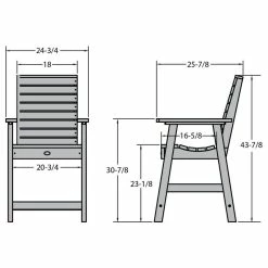 This product is assembled with 304-grade stainless steel hardware and comes with the assurance of a manufacturer’s 12-year residential limited warranty. The chairs have been load-tested, per ASTM 1561-03 (2008) standard for outdoor plastic furniture and have a 500-pound weight capacity. Some assembly is required (see assembly guide) and assembled dimensions are 24.75″L x 43.9″H x 25.9″D (28lbs)