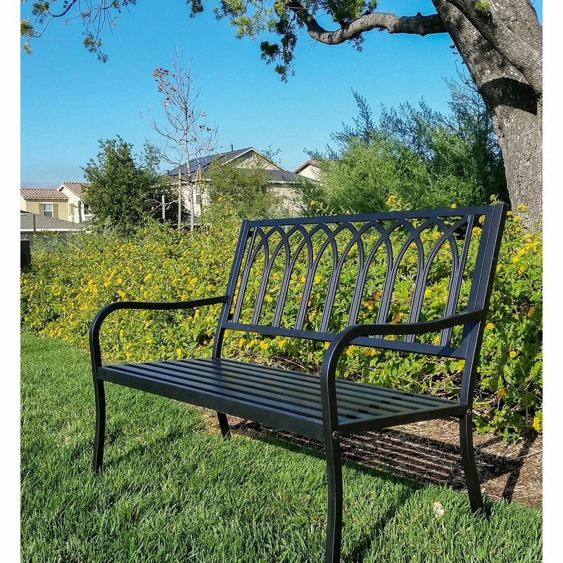The Innova Lakeside Steel Bench bring a bit of modern-classic style to any outdoor area. Black bench is made from durable steel tubing which is great for easy transport and moving it around. The back features a gorgeous details that will be a favorite of yours for years to come.