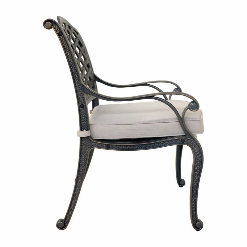 Versatility and portability meets beauty and classic styling with this collection. In this collection, We have full SKUs from dining to deep seating. Cast Aluminum is strong which can use for years. Premium Sunbrella or our solar protected fabrics known to be the most fade resistant, water resistant, mildew resistant outdoor fabric and are much more UV resistant than any other outdoor fabrics. They can be left outside in the sun for long periods without fading.