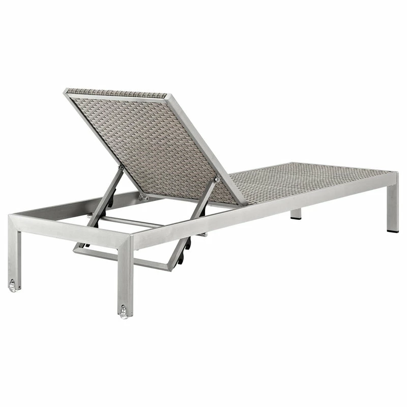 Maintain clean lines with the Shore Outdoor Sun Lounger in Rattan. Strong and durable, relax as you choose from four available recline positions or sunbathe on Shore’s tone-on-tone gray rattan weave. Made with an anodized brushed aluminum frame, Shore is a breeze to assemble, comes with clear wheels for easy mobility on the top end, and non-marking black plastic foot caps under the bottom two support legs. Chic and minimalist, the Shore Outdoor Sun Lounger in Rattan is a piece built to last with the comfort and versatility you’ve been looking for in an outdoor lounger.