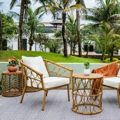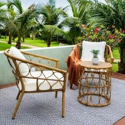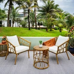 Relax in style and comfort with this steel frame round wicker chair. The refined craftsmanship and superior quality encapsulate a modern design as do its stylish lines and ergonomic sophistication. This 3 piece set will make a good addition to your patio and the warmth it brings supports long conversations or personal leisure time while you enjoy the soothing feel of nature. And your favorite drinks. Featuring a resilient steel frame with a round wicker construction and a round side table. It gives you a pleasurable sitting experience owing to its large and deep seat and durable wicker made product that is easy to clean.