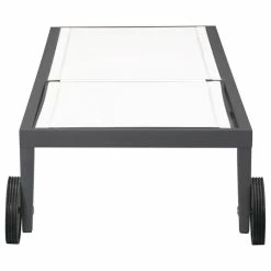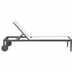 Pay homage to the sun worshipper within when you bring home this Nizuc outdoor patio adjustable sun chaise lounge chair. The dark grey aluminum frame is the star of the show, giving it the staying power it needs to withstand use and abuse by sun revelers for years to come. The waterproof mesh fabric forming the body of the chair is perfect for keeping cool while you sun yourself, and because itโs mesh, it doesnโt hold on to moisture, which helps the chaise dry more readily after a summer rain. Wheels on the chair make it perfectly portable.