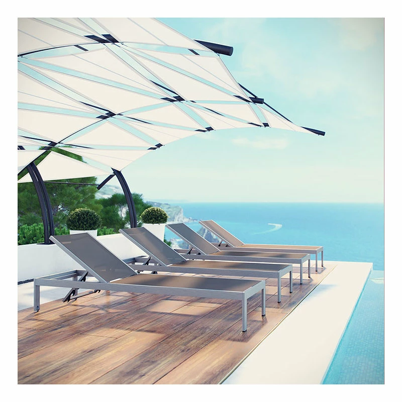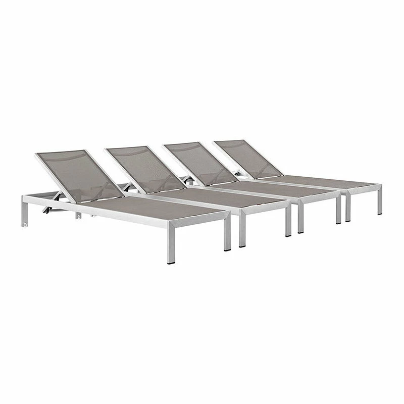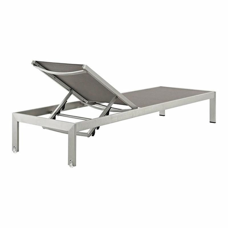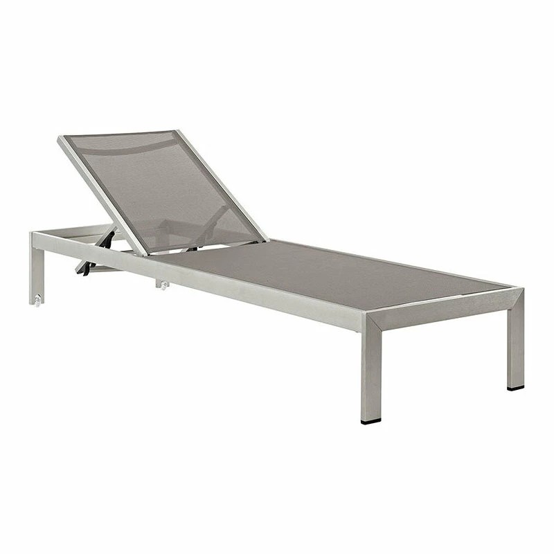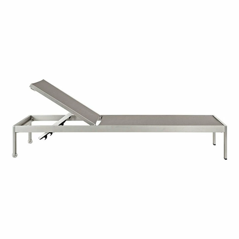 Maintain clean lines with the Shore Outdoor Sun Lounger in Mesh. Strong and durable, relax as you choose from four available recline positions or sunbathe while lying flush on Shore’s breathable Text Ilene’ mesh. Made with an anodized brushed aluminum frame, Shore is a breeze to assemble, comes with clear wheels for easy mobility on the top end, and non-marking black plastic foot caps under the bottom two support legs. Chic and minimalist, the Shore Outdoor Sun Lounger in Mesh is a piece built to last with the comfort and versatility you’ve been looking for in an outdoor lounger.