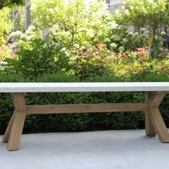This 6-piece Dining Set is made from sustainable eucalyptus hardwood. The composite table and benchtop construction is made from molded polyresin and blended with powdered concrete for texture, density, and long-lasting durability in all climates. The unique final finish, which appears like freshly poured white and ivory concrete, is durable and highly resistant to many tough stains for years of use and enjoyment.