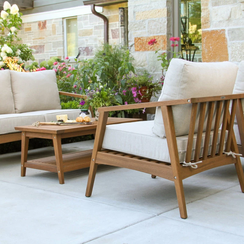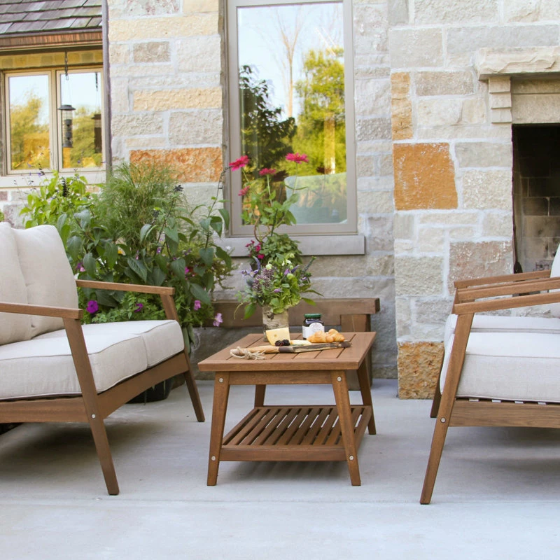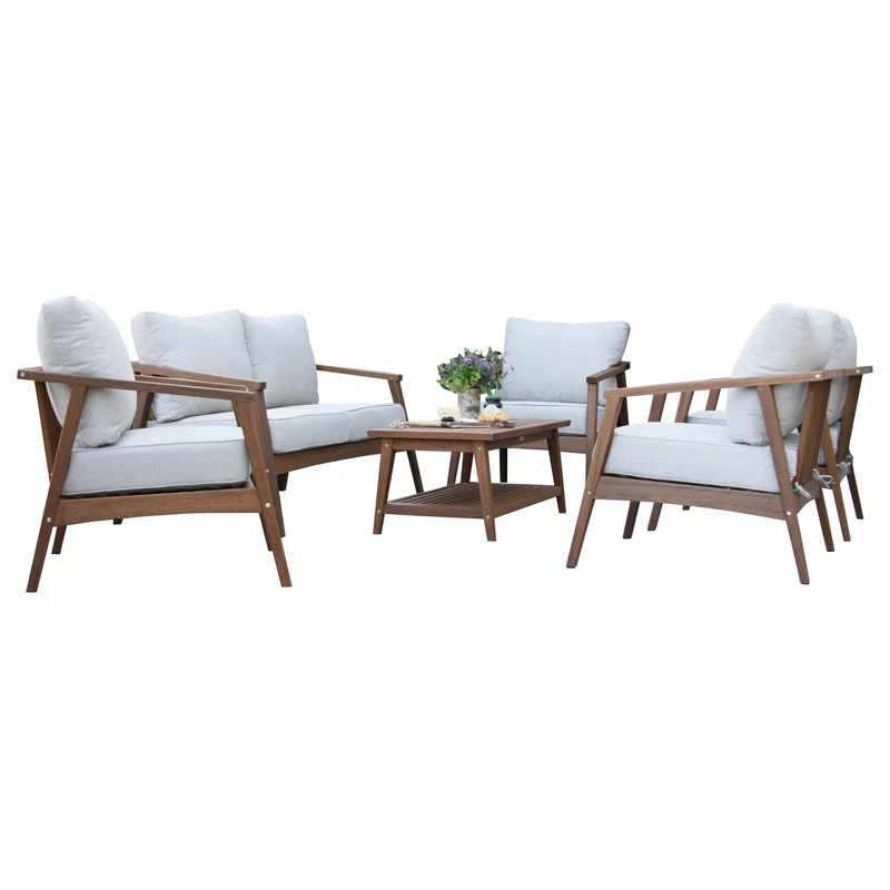 Crafted from Plantation-grown Eucalyptus hardwood, this 6 piece luxury seating group comes with our lush Olefin cushions and pillows for outdoor use. The modern seating group provides the perfect place to kick back and read a book or enjoy a glass of wine.