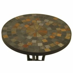 The Mojave Accent Table provides style and character to any outdoor or indoor setting. This table features a real slate-stone mosaic top and a beautifully curved, powder-coated metal frame.