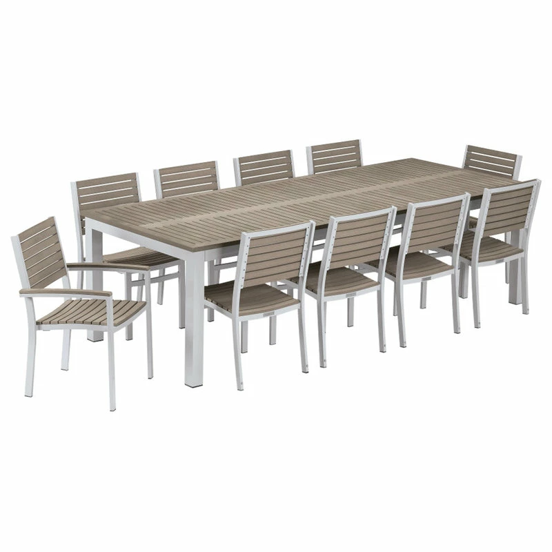 - Set Includes: 1 Dining Table, 2 Armchairs, 8 Side Chairs