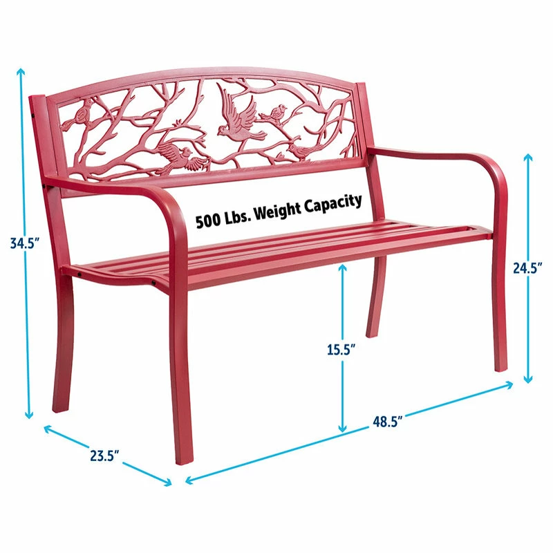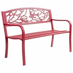 Best deal ๐ฅ Patio Premier Perched Birds Metal Park Bench – Red ๐งจ