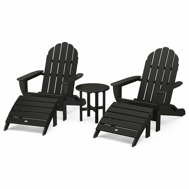 - Set includes two AD7030 Classic Oversized Curveback Adirondacks, two OT73 Classic Adirondack Ottomans, and a RST18 Round 18″ Side Table