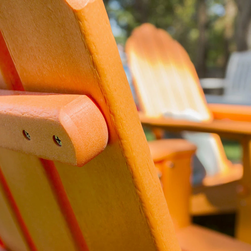 With a Curved Back, this Adirondack Set uses the same footprint and design as others but with a slightly fresher appeal. The set is made complete with the matching Ottoman and Side Table, giving you a complete look for all seasons.
