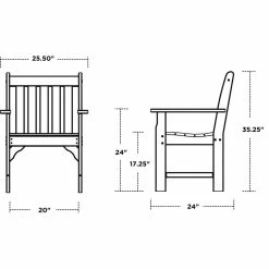 This chair features a contoured seat and comfortable back so sit back and enjoy a glass of your favorite chardonnay. POLYWOOD furniture is constructed of solid POLYWOOD lumber that’s available in a variety of attractive, fade-resistant colors. It won’t splinter, crack, chip, peel or rot and it never needs to be painted, stained or waterproofed. It’s also designed to withstand nature’s elements as well as to resist stains, corrosive substances, salt spray and other environmental stresses. Best of all, POLYWOOD furniture is made in the USA and backed by a 20-year warranty.