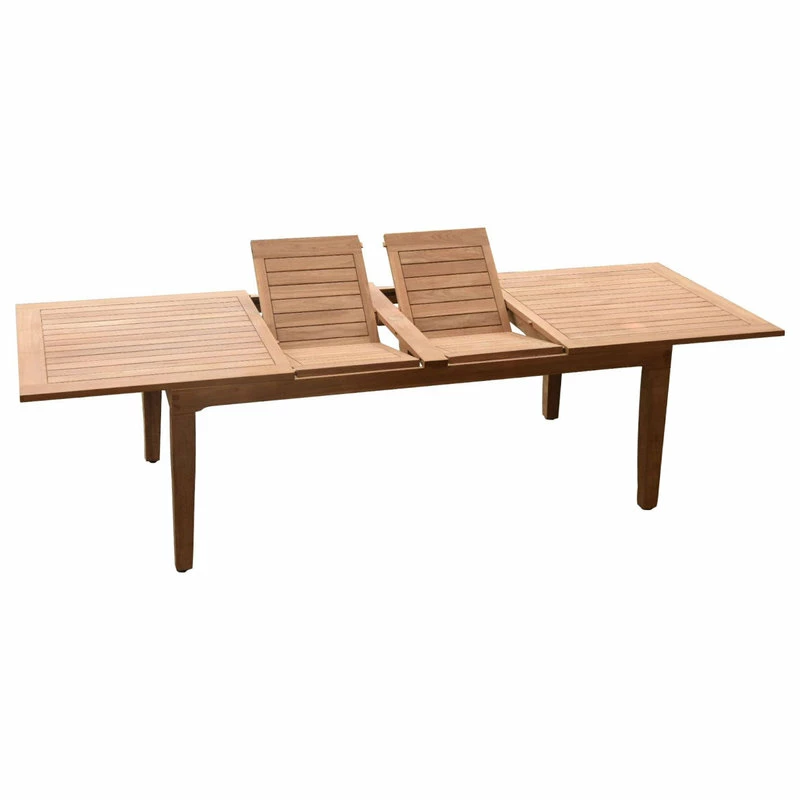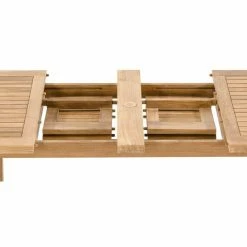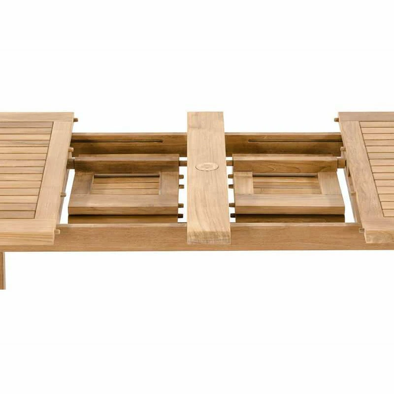Table Dimension: 83″ Length (Closed position), 102.5″ (Single leaf extended out) and 122″ Length (Both leaves extended out), 43″ Width, 31″ Height, 2″ Umbrella Hole is in the center of the table