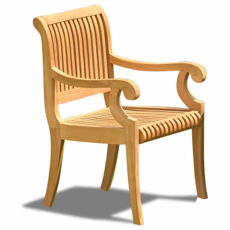 This Teak Armchair incorporates a gentle curve and seating panels that have become known as The Wave. The additional gentle Wave curve in the seat panel allows for an unexpected level of comfort for a teak wood chair with no cushion. Time honored practices of mortise and tenon joinery ensure long-lasting excellence for this Outdoor Teak Chair. Made of premium teak from eco-friendly renewable plantations and built to commercial specifications.