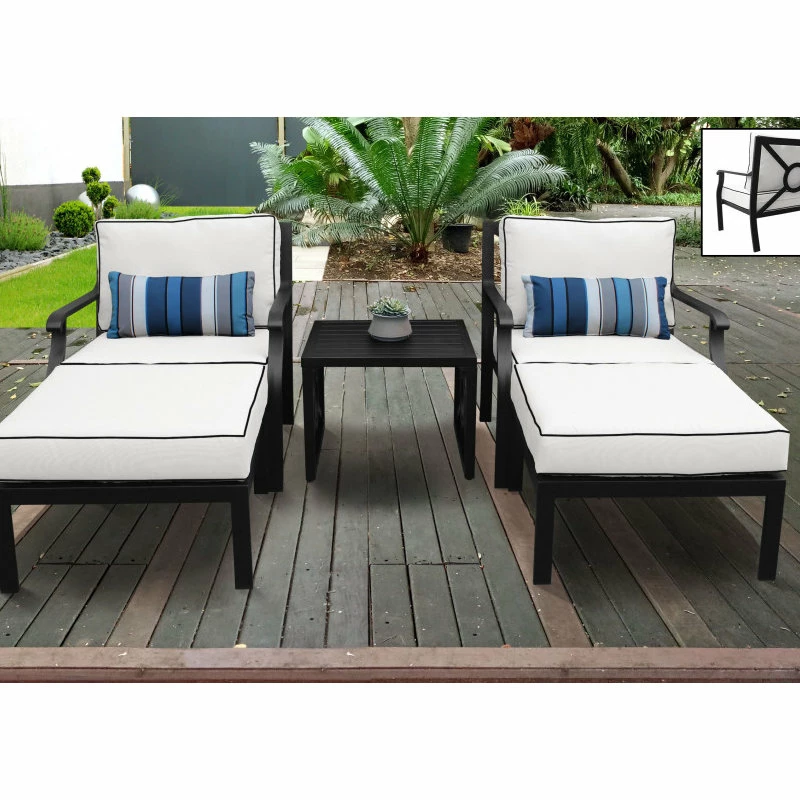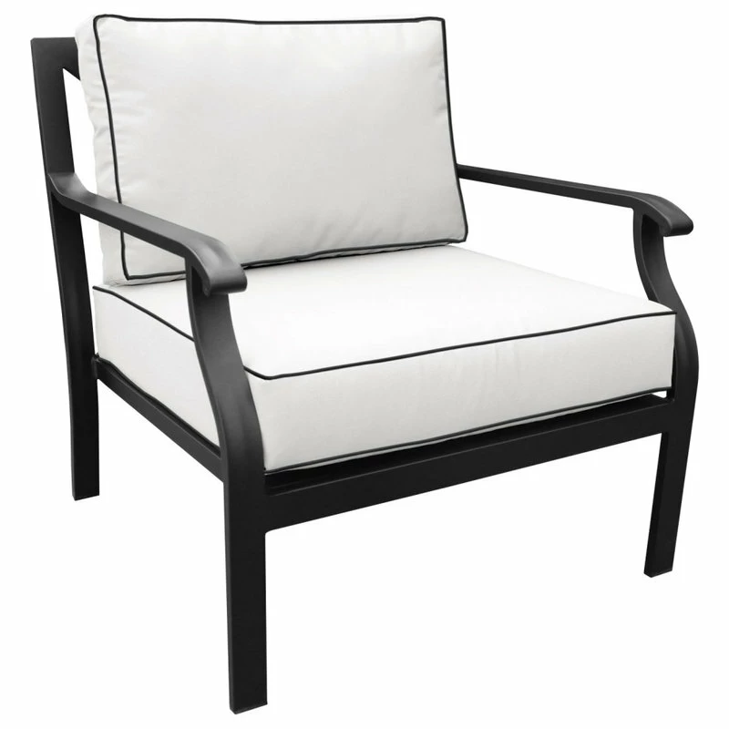Revitalize your outdoor experience with the kathy ireland Homes & Gardens Madison Ave. Collection by TK Classics. This collection features clean; sleek matte black Onyx aluminum frames supporting our exclusive white Snow cushions with black piping. Suited for any occasion or gathering; the fine details such as scrolling arms and beautifully designed backs will impress and bring new life in your outdoor arrangement. Home decor has never felt this good.