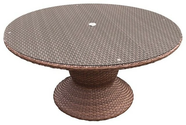 Outdoor entertaining is stylish and easy with our Laguna Dining Pedestal Table. It’s elegant round pedestal creates a dramatic focal point for summer gatherings. The table has a tempered-glass top that is easy to wipe clean.