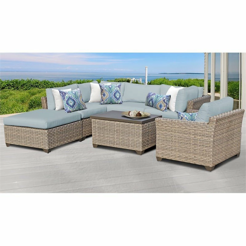For a relaxed outdoor space that makes everyone feel at home, the Monterey 7 Piece Wicker Outdoor Sectional Seating Group is perfect. This set includes one 4-piece sectional sofa (two corner sofa seats, two armless sofa seats), one ottoman, one club chair, and one storage coffee table. Offering a light, nautical look, this set is constructed from rust-resistant aluminum wrapped in resin wicker, so thereβs no need to worry about this set leaving rust stains on your patio, or bringing it inside when the weather takes a turn. The resin wicker is a subtly sophisticated Summer Fog color in a wide basket weave for a look of casual elegance. This set comes fully assembled, complete with fade and water resistant cushions in your choice of colors. The standard color Beige cushion covers come already equipped on the cushions. When you choose one of the other color options, your choice also comes included for patio style in the color you love. Zippered, removable cushion covers that are machine washable make cleaning the cushions simple and easy. This set comfortably seats up to six people.