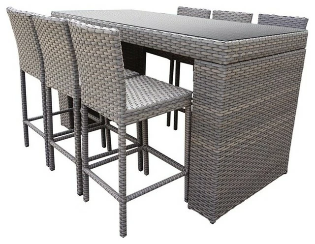 Simple, affordable and beautiful, our Oasis Bar Set is designed for ultra-comfortable outdoor dining. Table is topped with tempered glass and bar stools store neatly under the table.Features:β’ Custom hand woven all-weather, high density, PE (polyethylene) wickerβ’ Strong rust-resistant powder coated aluminum frame for maximum durabilityβ’ Commercial grade constructionβ’ Perfect for outdoor use in all climatesβ’ Fully Assembled – ready to use and enjoy