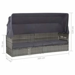 This lounge bed will be an ideal hideaway for relaxing and enjoying your leisure time near the swimming pool, in your garden or on your patio. The sun lounger is made of water-resistant PE rattan, which is easy to clean, stain resistant, hardwearing and suitable for daily use. The sunroof also protects you from the hot sunlight when you read or relax in summer days. The lying area can be adjusted in various settings for the most comfortable position. The steel frame makes this sunlounger sturdy and stable. It is also delivered with a highly comfortable, thickly-padded seat cushion for the ultimate comfort. The low-maintenance polyester cover can also be removed and washed. Delivery includes a lounge bed with canopy and a large seat cushion. Please note: We recommend covering the lounge bed during rain, snow and frost for its best service to last.